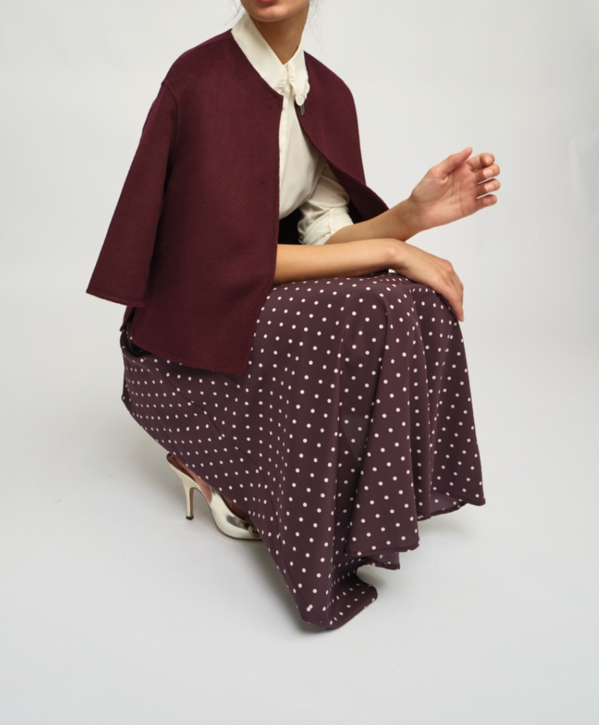 Clean cut and sophisticated, Mary jacket exudes classic elegance. Tailored from a double-faced luxurious cashmere wool blend, this jacket can be worn over all your favourite dresses and blouses. Mary features an elegant snap button at the top.